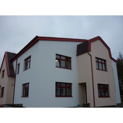 Kompletní realizace zateplení v obci Kostelec. Zateplení řešeno v kompletním systému výrobce stavební chemie.